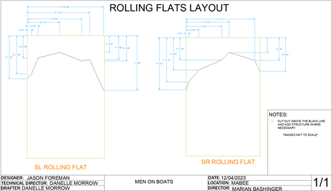 I was the Technical Director for Baylor Theatre's 2024 production of Men on Boats. I was tasked with overseeing 20 carpenters and 2 scenic charges. This show had multi use wheeled crate units, beveled platforms, custom moat platforms and 6 wall units. Aligning with my personal principles as a sustainable theatre creator offered some unique challenges with the large scale walls and crates. This was my first time working with a guest designer. A developed a solid line of communication with the out of state designer and director to help bring the show to fruition.